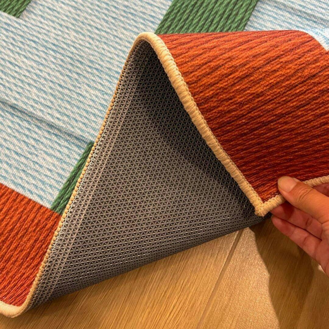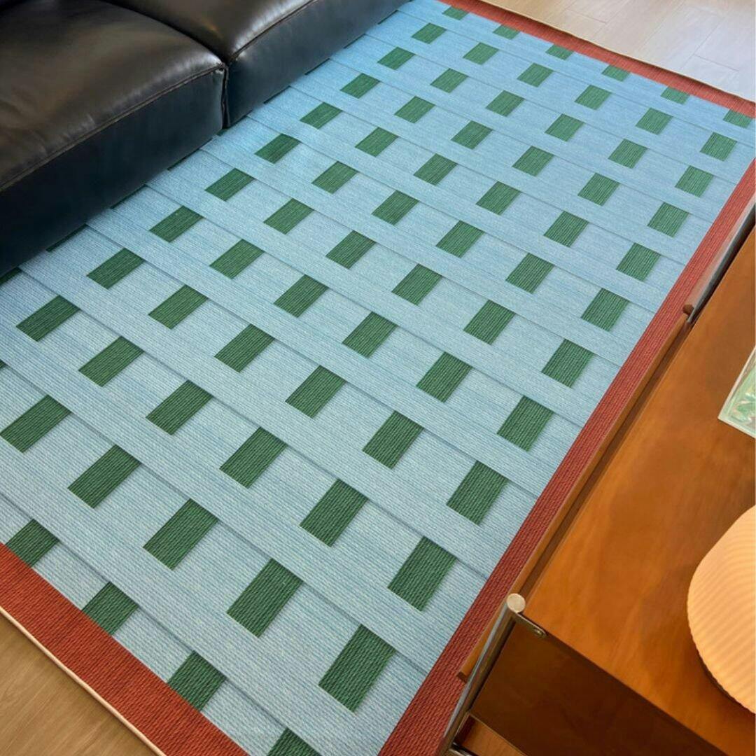 This blue-green block pattern rug brings personality to your space without trying too hard. The alternating colors create visual interest while staying sophisticated enough for grown-up homes.