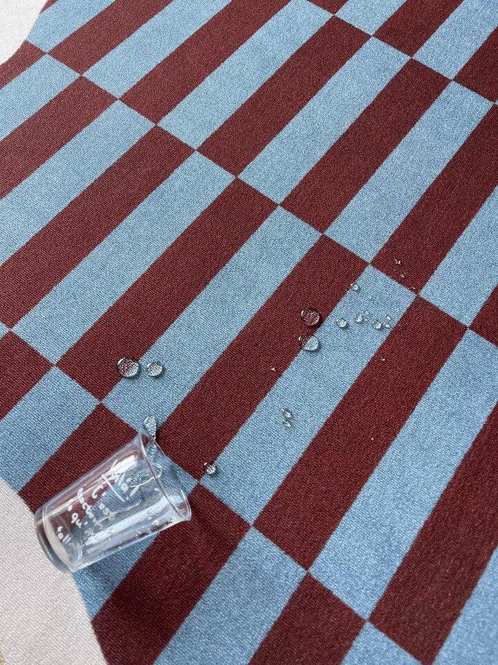 The Wobble Edge Checkered Rug puts a playful spin on the classic checkerboard, pairing sky-blue and burgundy squares with a soft wavy border. The organic edge adds movement and character, turning a familiar pattern into a fun statement piece that brings personality to any space.